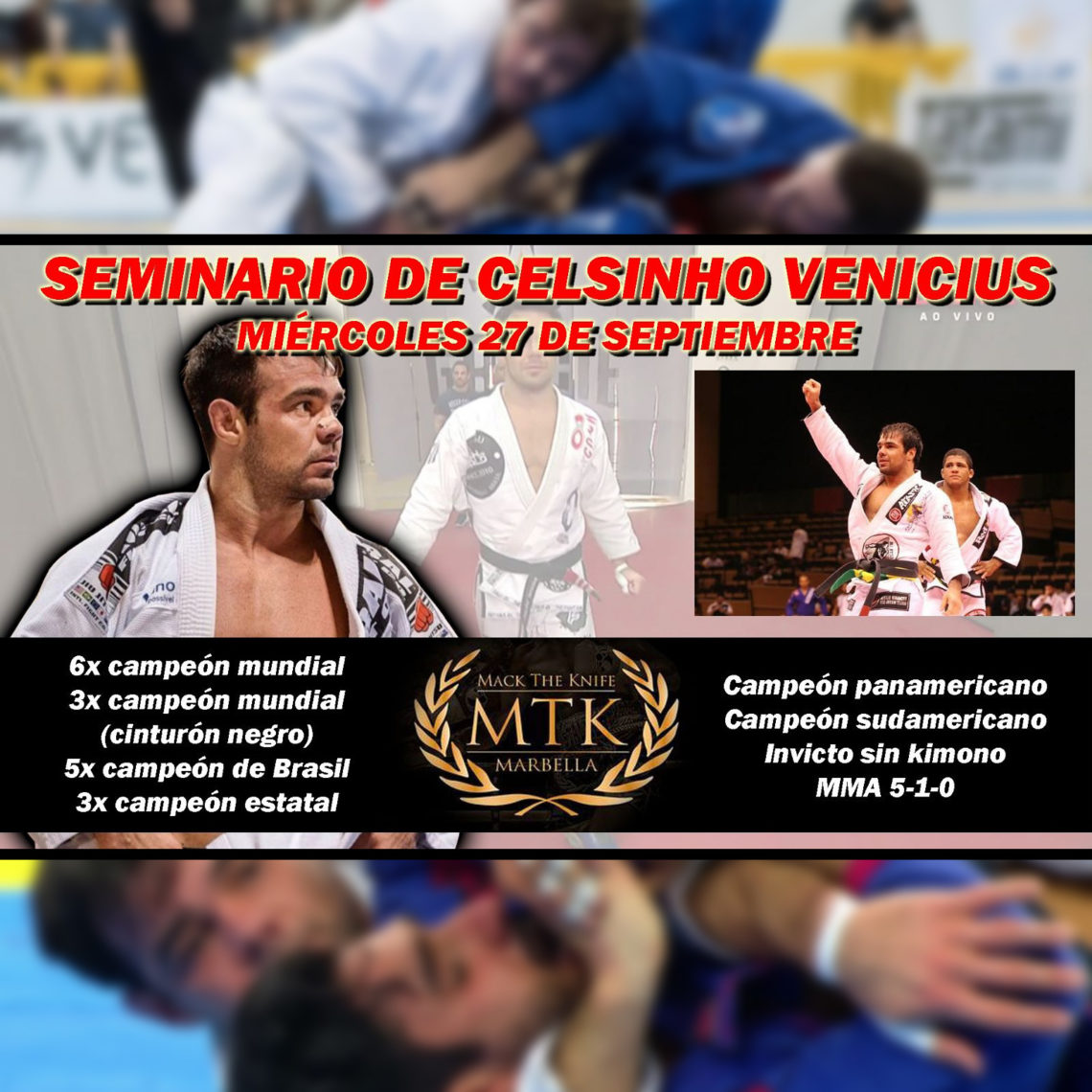 El miércoles 27 septiembre a las 19:30 en MTK Marbella ve un seminario por el gran campeón Celso “Celsinho” Venicius,