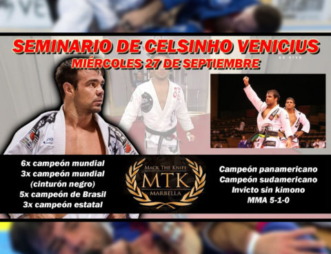 Wednesday 27th September at 19:30 at MTK Marbella sees a Seminar by the Great Champion Celso “Celsinho” Venicius, a Brazilian jiu-jitsu competitor and a mixed martial artist. He has won the Brazilian Jiu-Jitsu World Championship three times and arguably the best jiu jitsu lightweight competitor of the mid 2000’s period, among his achievements are: •…
